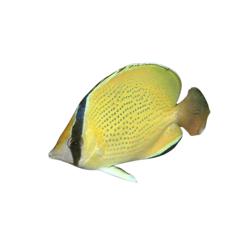 The Citron Butterflyfish is a striking marine species recognized for its vibrant yellow body adorned with bold black markings and intricate white patterns. This butterflyfish is not only visually appealing but also adds a graceful presence to reef aquariums, making it a favorite among both novice and experienced aquarists.