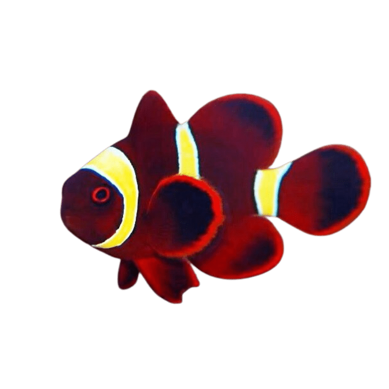 The Maroon Gold Stripe Clownfish (Premnas biaculeatus) is a visually striking species with a rich maroon body accented by bold gold stripes. It is one of the more aggressive Clownfish species, often displaying territorial behavior, but is still a popular choice due to its unique coloration.