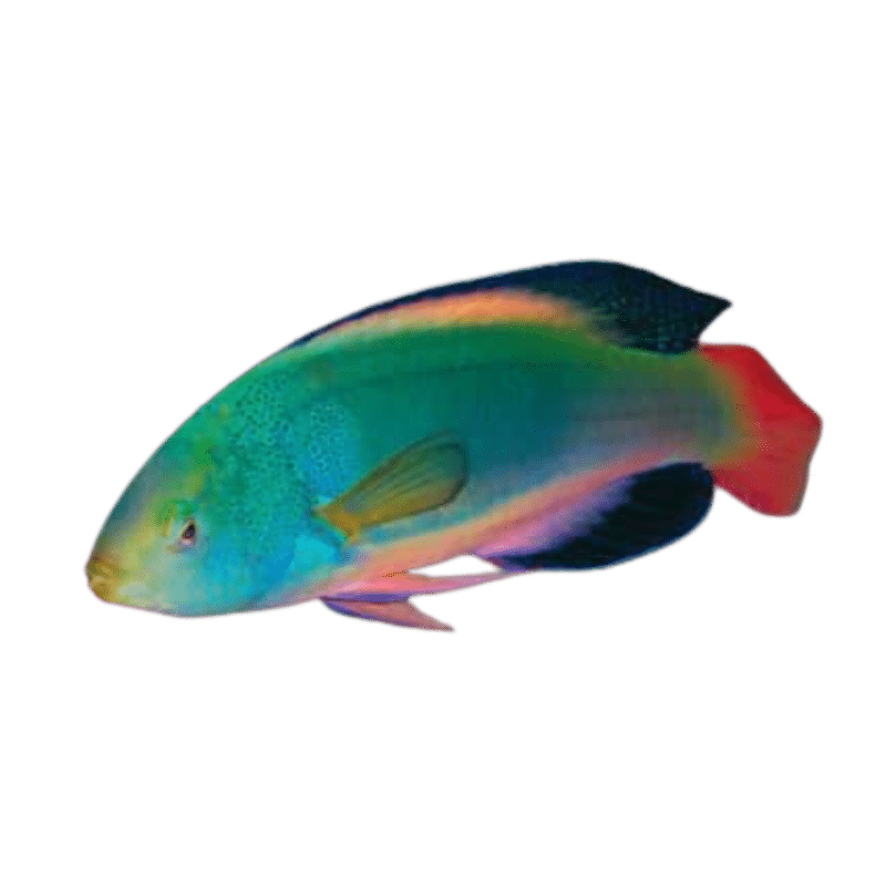The Scott’s Fairy Wrasse (Fiji) is a brilliantly colored fish, with hues that vary from vibrant blues and greens to striking red and orange highlights. Known for its active nature, this wrasse brings dynamic color and movement to the aquarium. Ideal for peaceful reef setups, it gets along well with other non-aggressive tank mates, though it may display mild territorial behavior in confined spaces. This species thrives in reef aquariums, where it can forage among live rocks, adding to the tank’s ecosystem. It’s a stunning choice for aquarists looking to enhance the visual appeal of their aquarium.